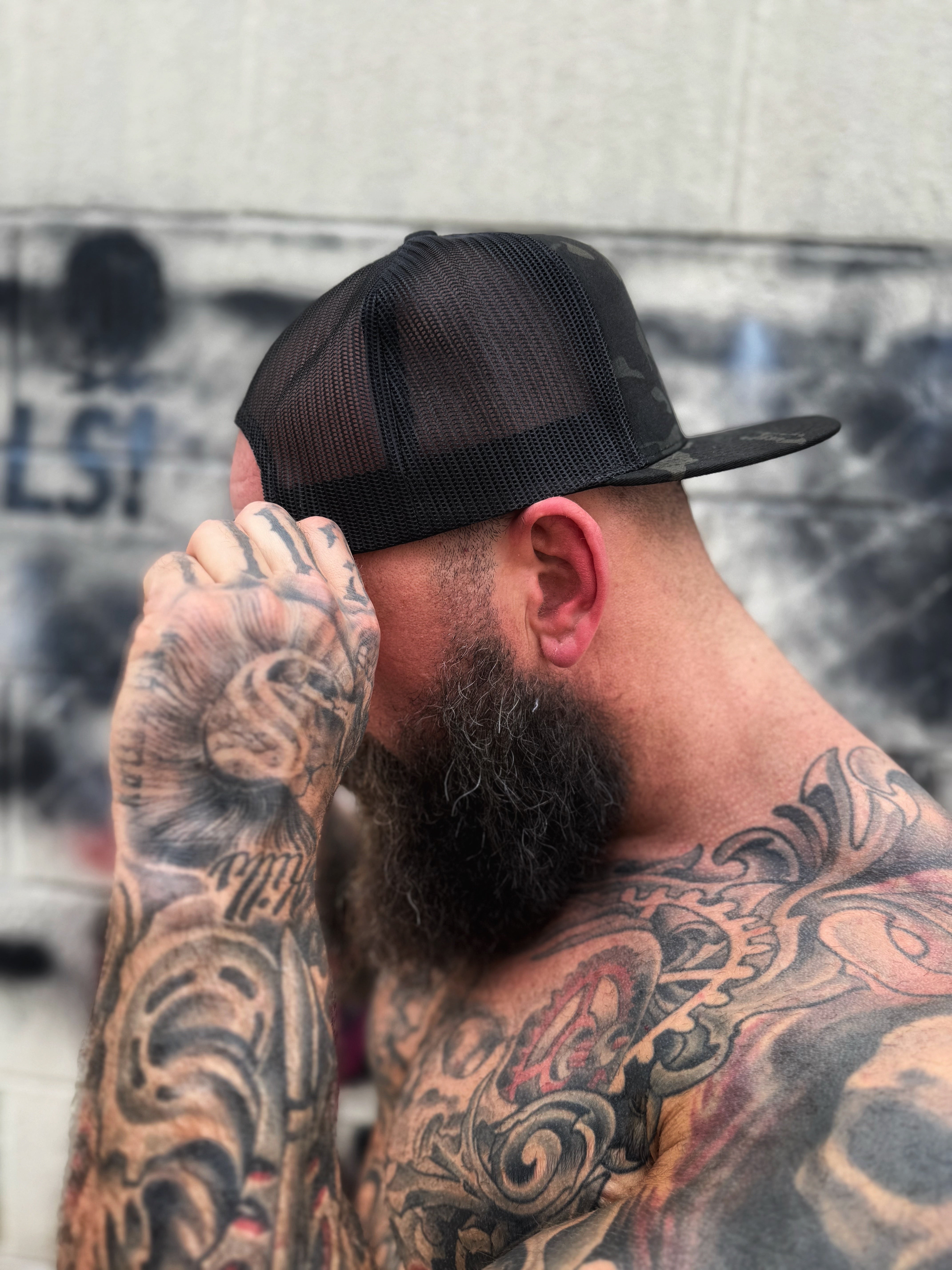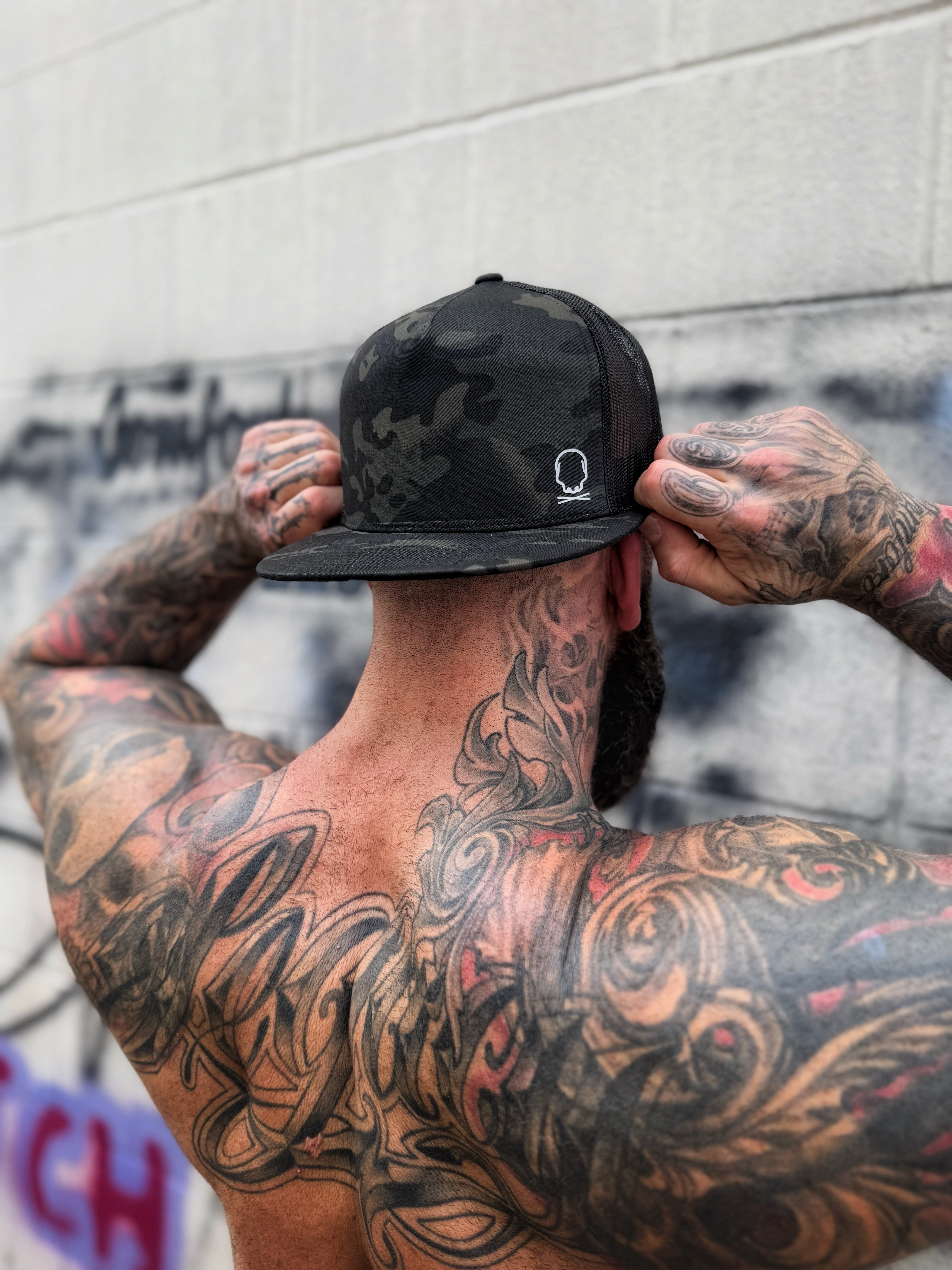 TDC SYMBOL BLACK CAMO FLAT BILL HAT