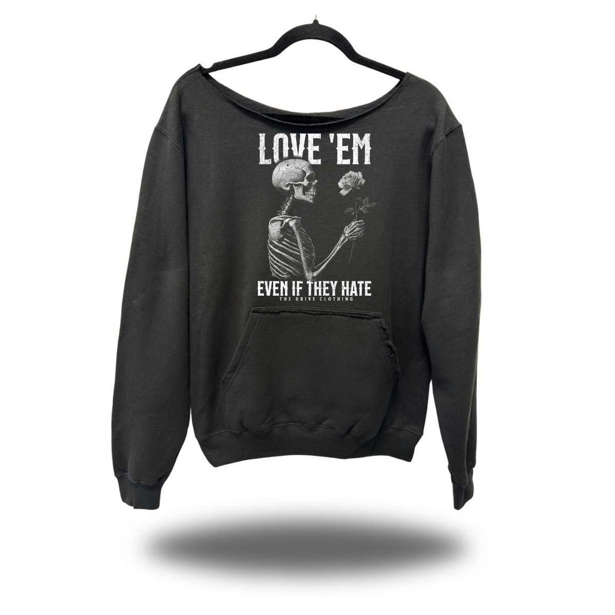 LOVE EM ROAD RASH DIAMOND CROSS BLACK WIDENECK HOODIE