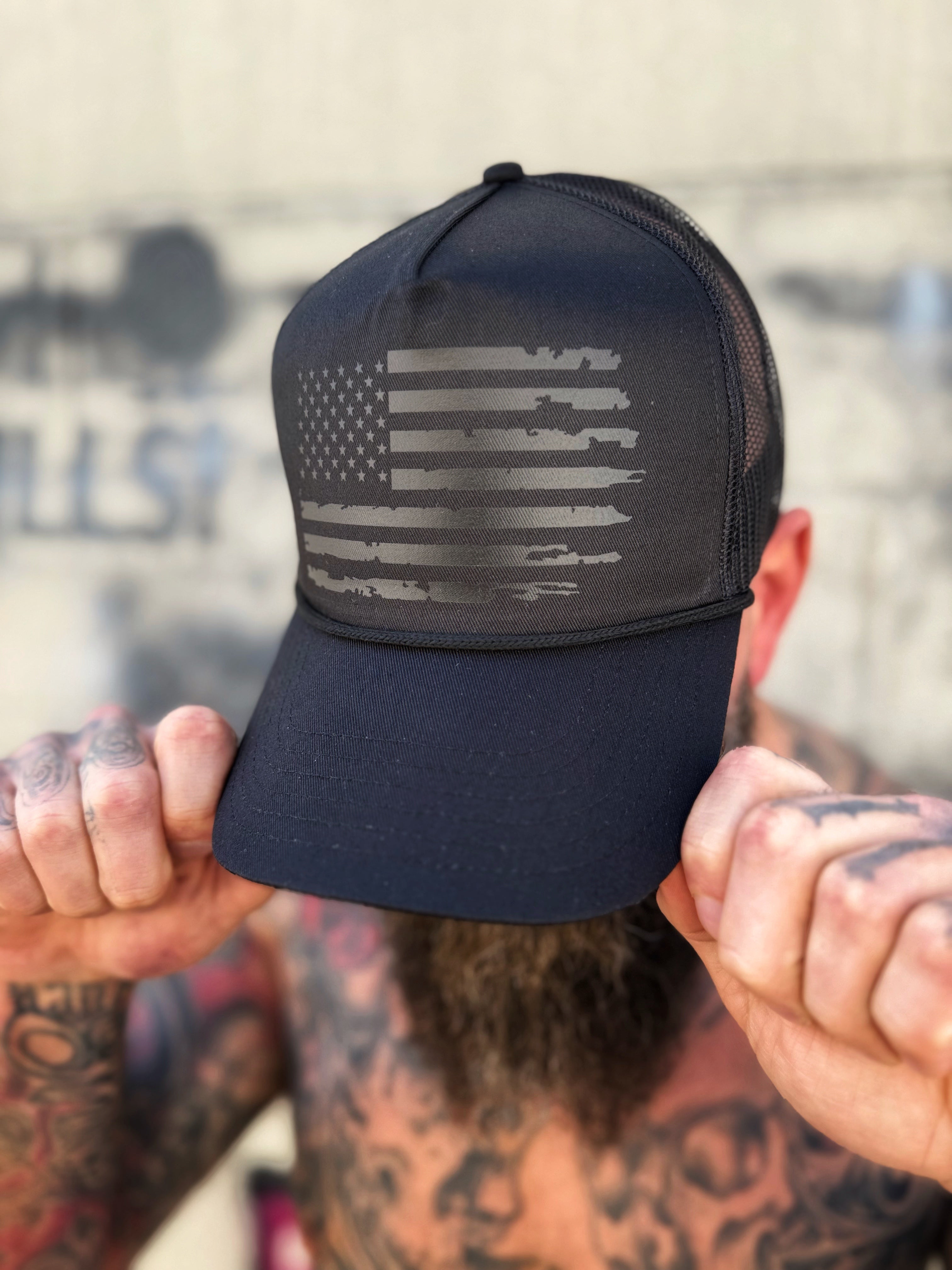 USA FLAG BLACK CURVED BILL BLACK HAT