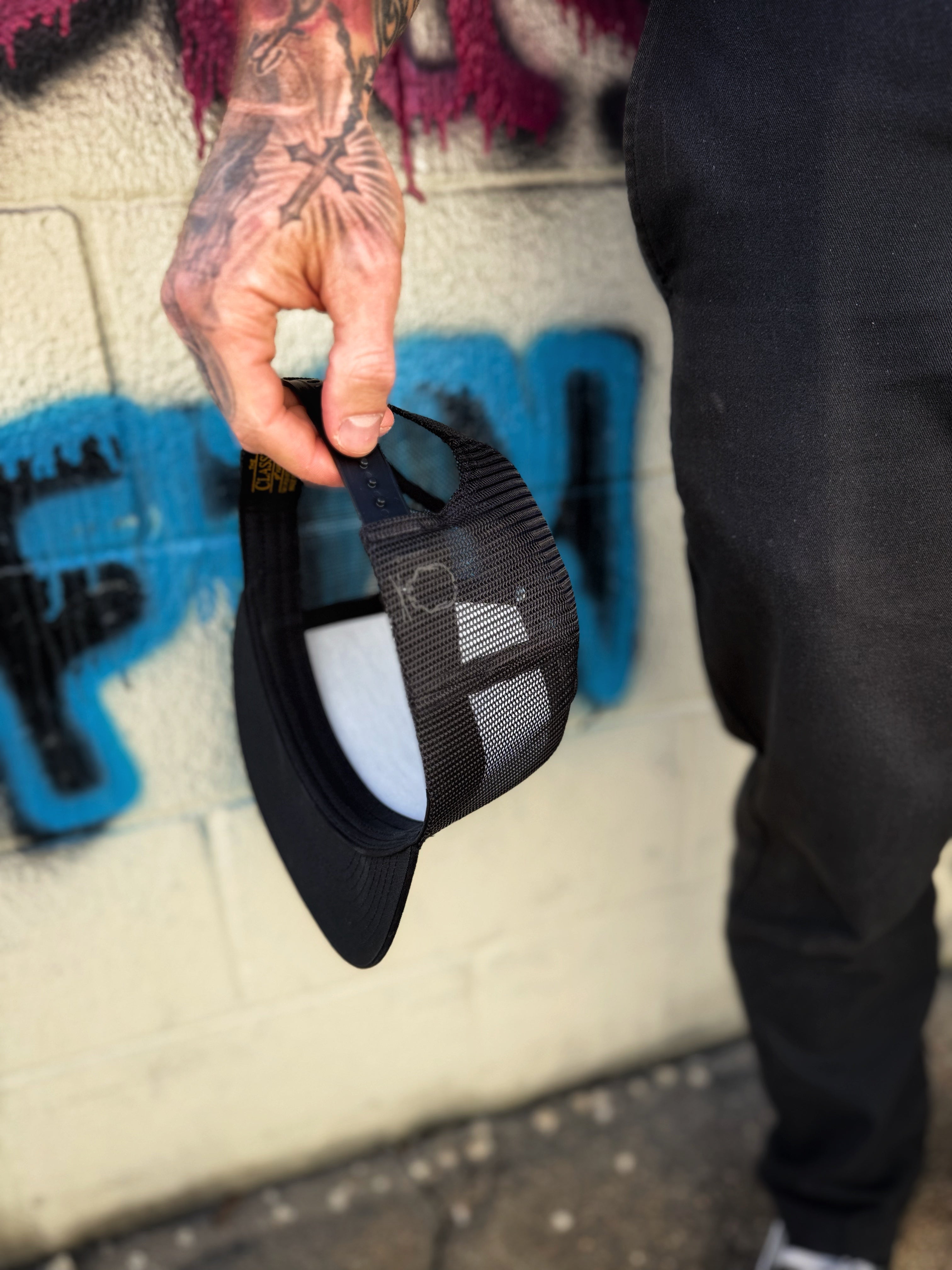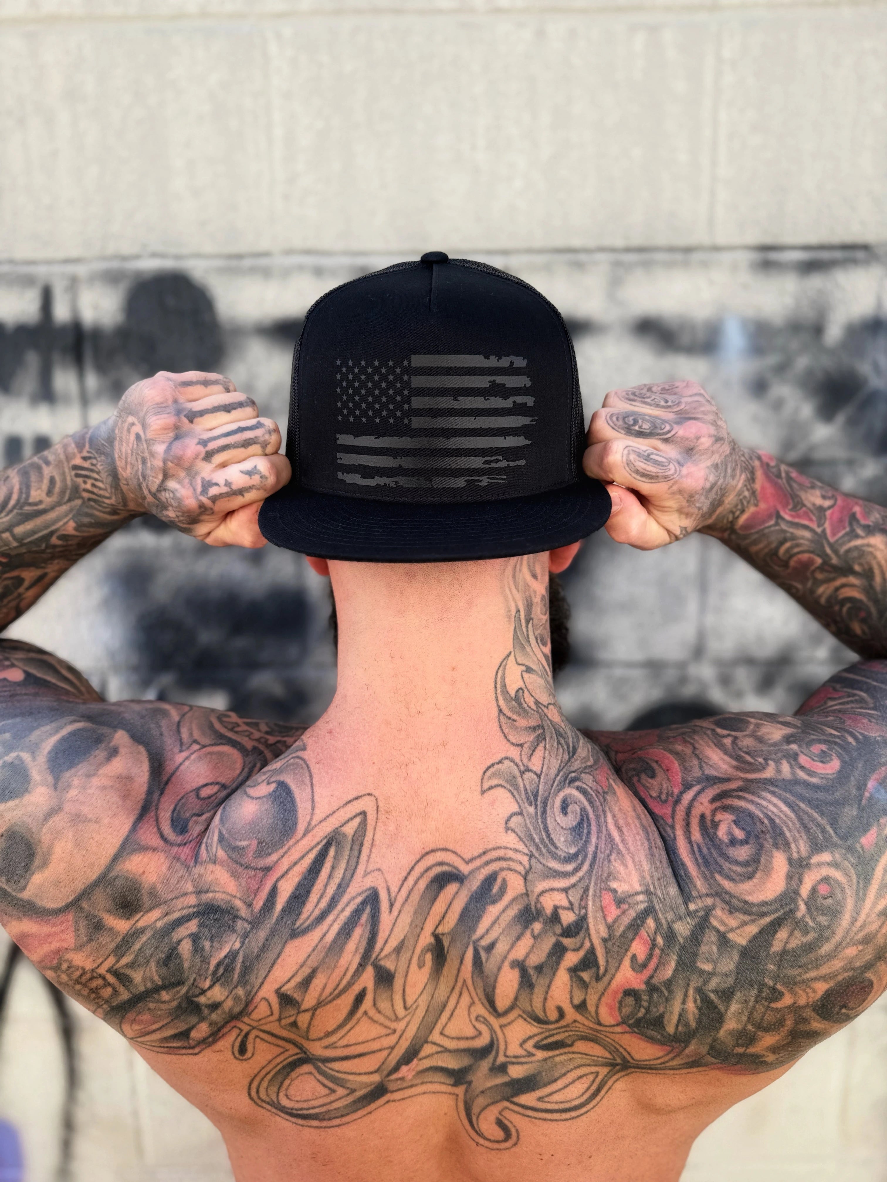 USA FLAG BLACK ON BLACK FLAT BILL HAT