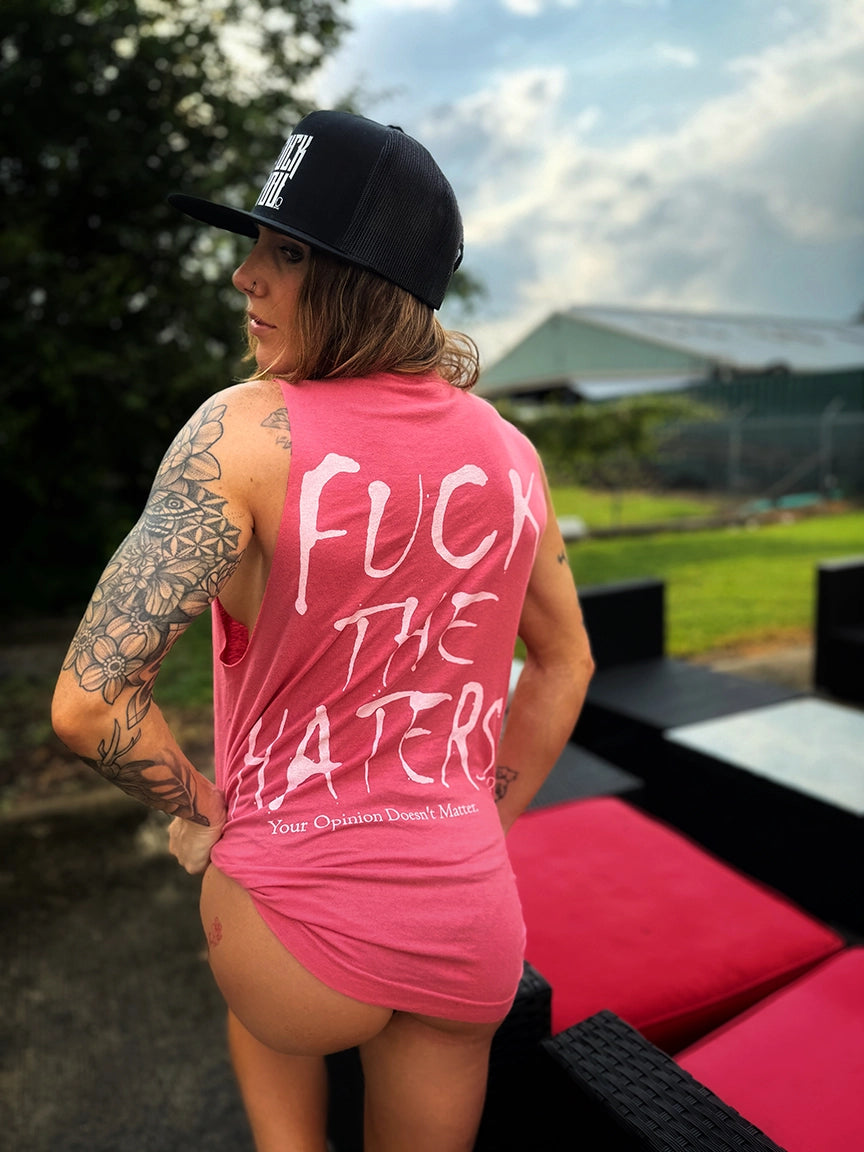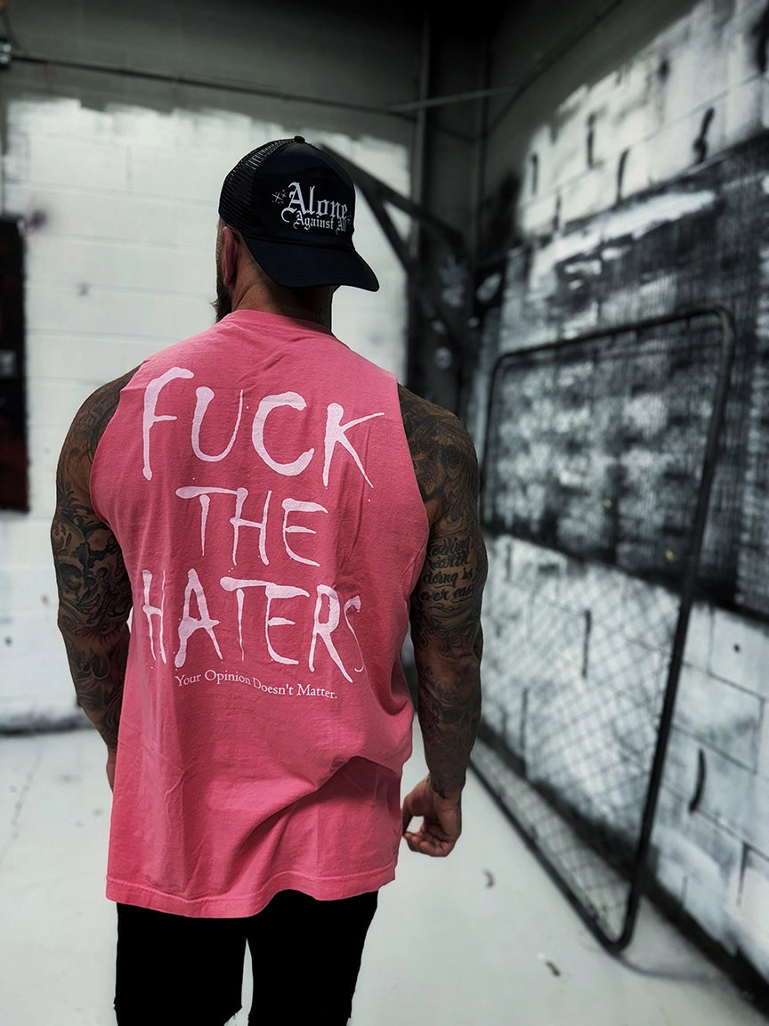 VINTAGE FUCK THE HATERS TANK TOP *PINK*