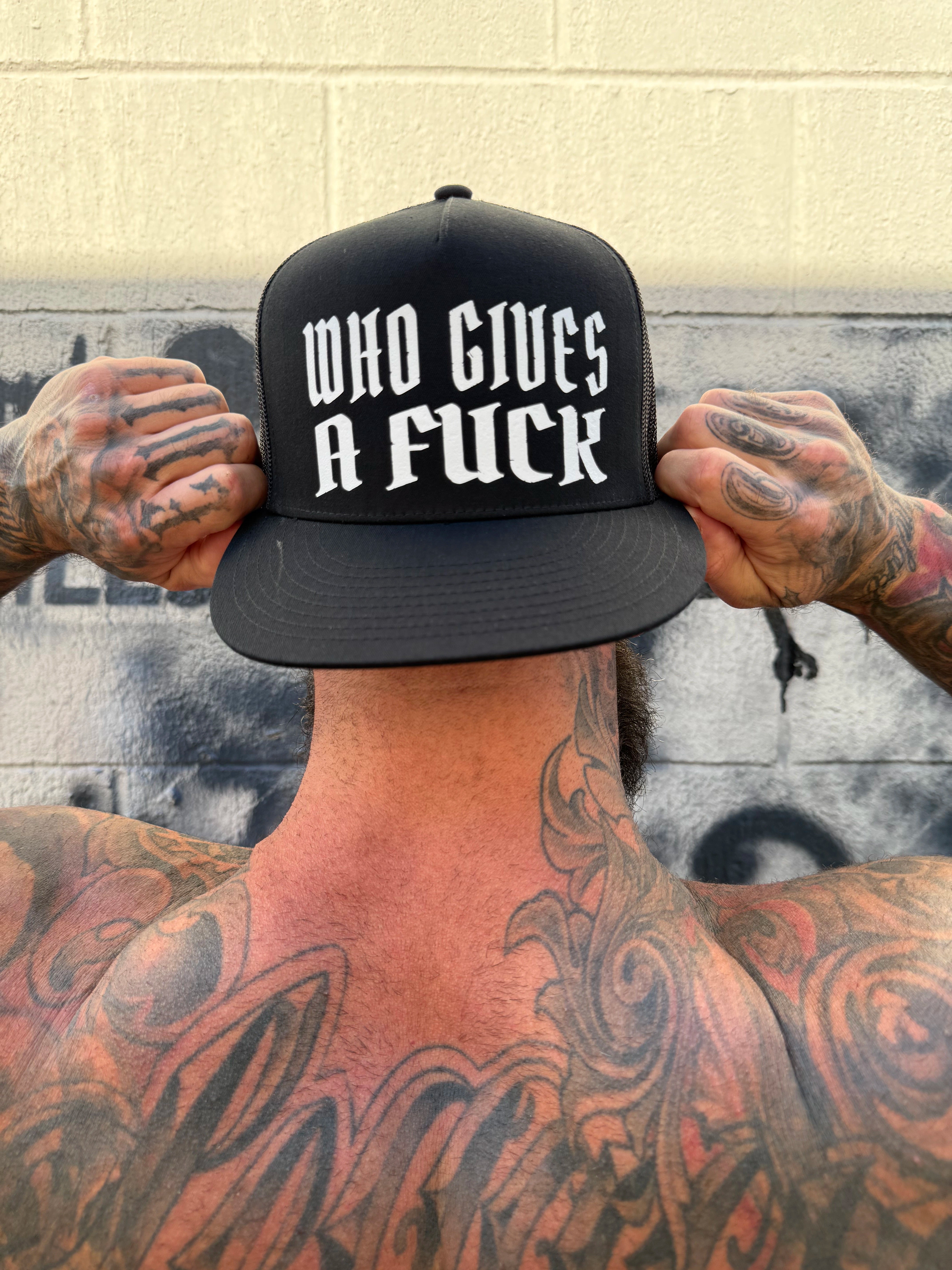 WHO GIVES A FUCK BLACK FLAT BILL HAT